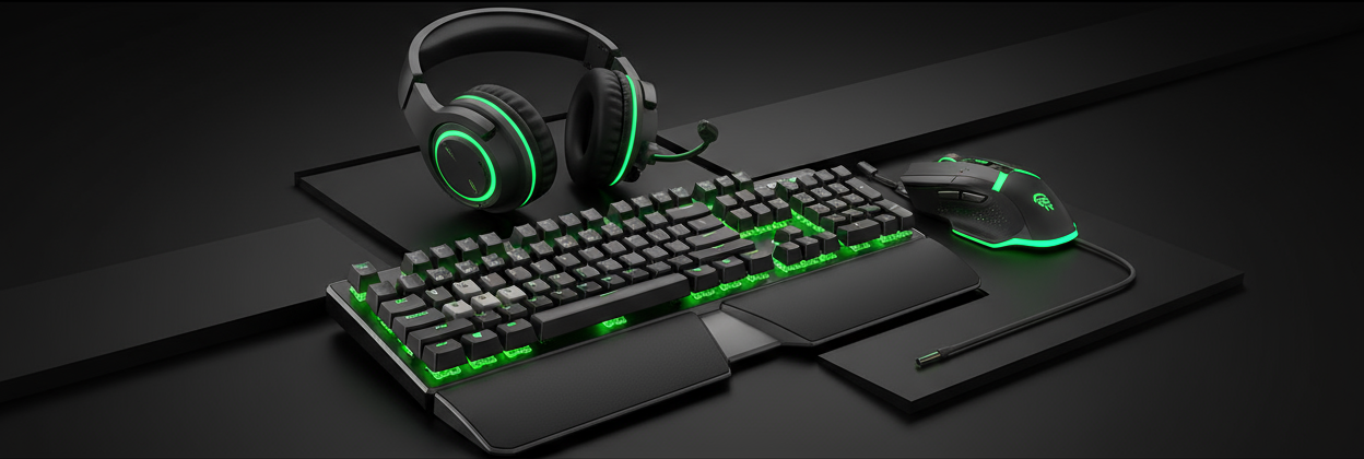 Con un diseño moderno, tonos oscuros y acentos verde neón, nuestra tienda refleja la esencia del mundo gamer: poder, precisión y personalidad.